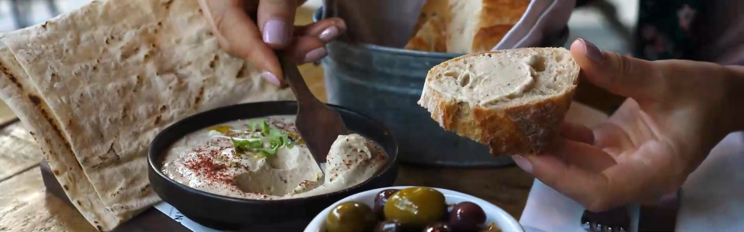 Hummus: Der wohl bekannteste „Dip“ der levanten Küche ist Hummus. Hergestellt aus Kichererbsen, Knoblauch, Kreuzkümmel, Tahina und Zitronensaft ist er schnell und einfach zubereitet und sollte bei keinem Mezze fehlen.